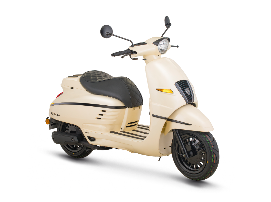 作为全球最古老的摩托车制造者之一和现代塑料车身踏板车的发明者,标致摩托从117年造车历史中攫取灵感,传承上世纪50年代标致第一辆双座踏板车S55复古经典,通过全面的尾翼流线车身,以及令人无法抗拒的复古造型,造就了Django兼具时尚与复古的独特魅力。