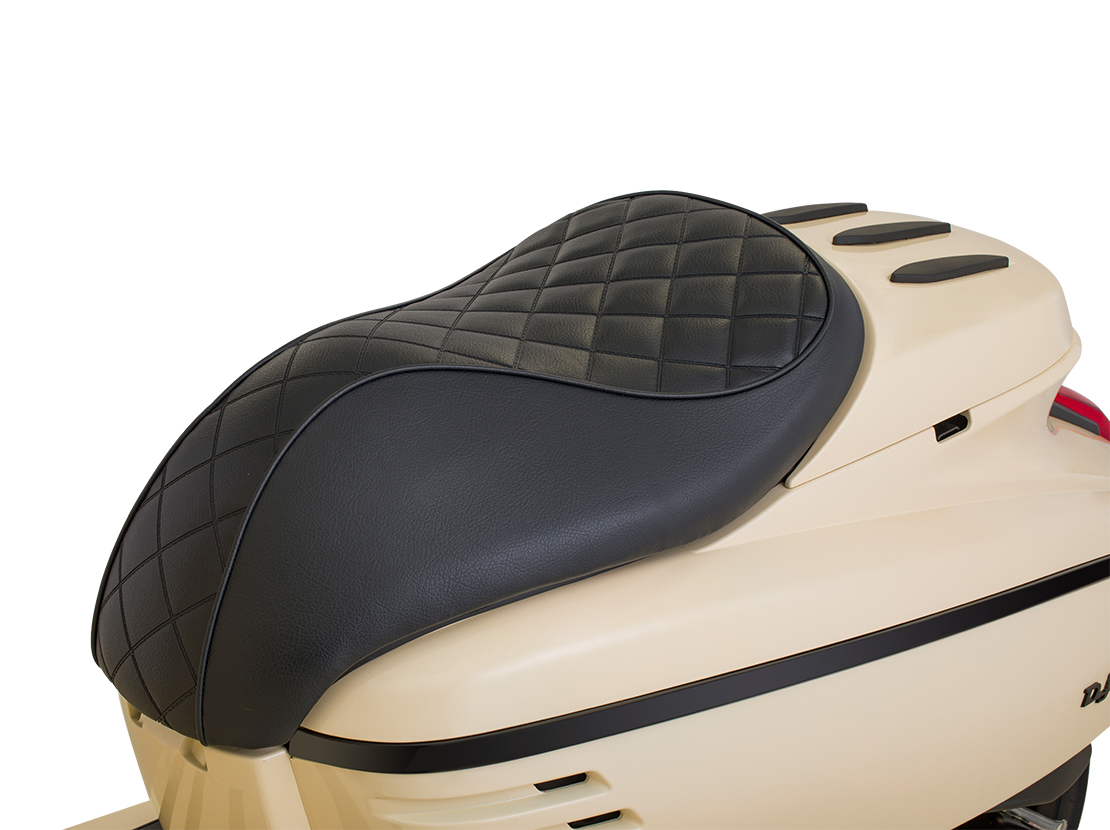 双人鞍座采用分段式设计,海绵硬度为模拟驾驶状态而设定,皮革缝合背面设有防水贴。对皮件的拼接、缝合、衬垫等要求非常严格,皮质柔韧,承托力均匀,减压出色。在造型和舒适度等方面为消费者提供最佳感受。
