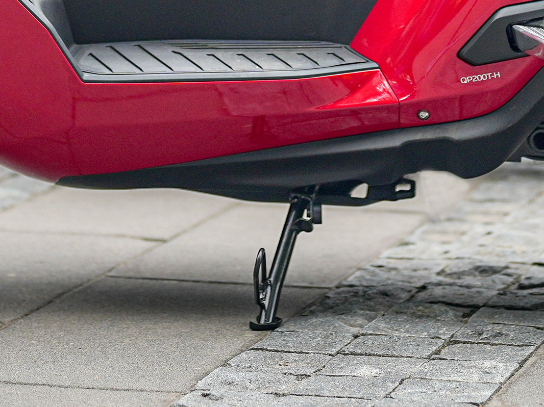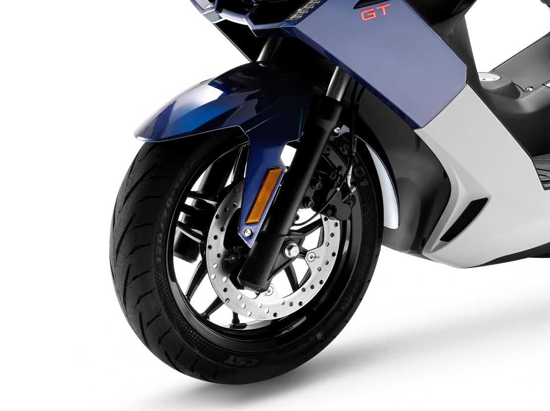 配备欧系大尺寸钻石切割铝合金轮毂,前14后13寸大面积街跑型花纹运动轮胎,低温高抓地配方,无惧湿滑路面。搭配前265mm单碟双活塞与后240mm尺寸单碟双活塞刹车盘,体验上佳的操控体验。