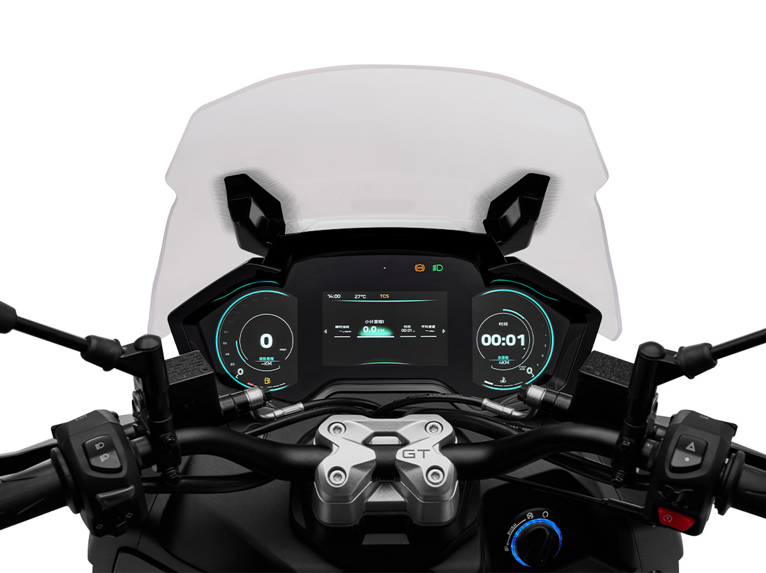 标配同级罕见的36cm全彩三联TFT仪表,采用时下汽车行业流行的5英寸中央屏组合两块3.5寸侧屏,简约明亮的科技美学交互设计,高精度显示车况丰富信息,支持三种全彩显示模式。一键投屏导航,互联“标致摩托APP”和“雷震”车机系统,一屏掌控,方便快捷到达目的地。